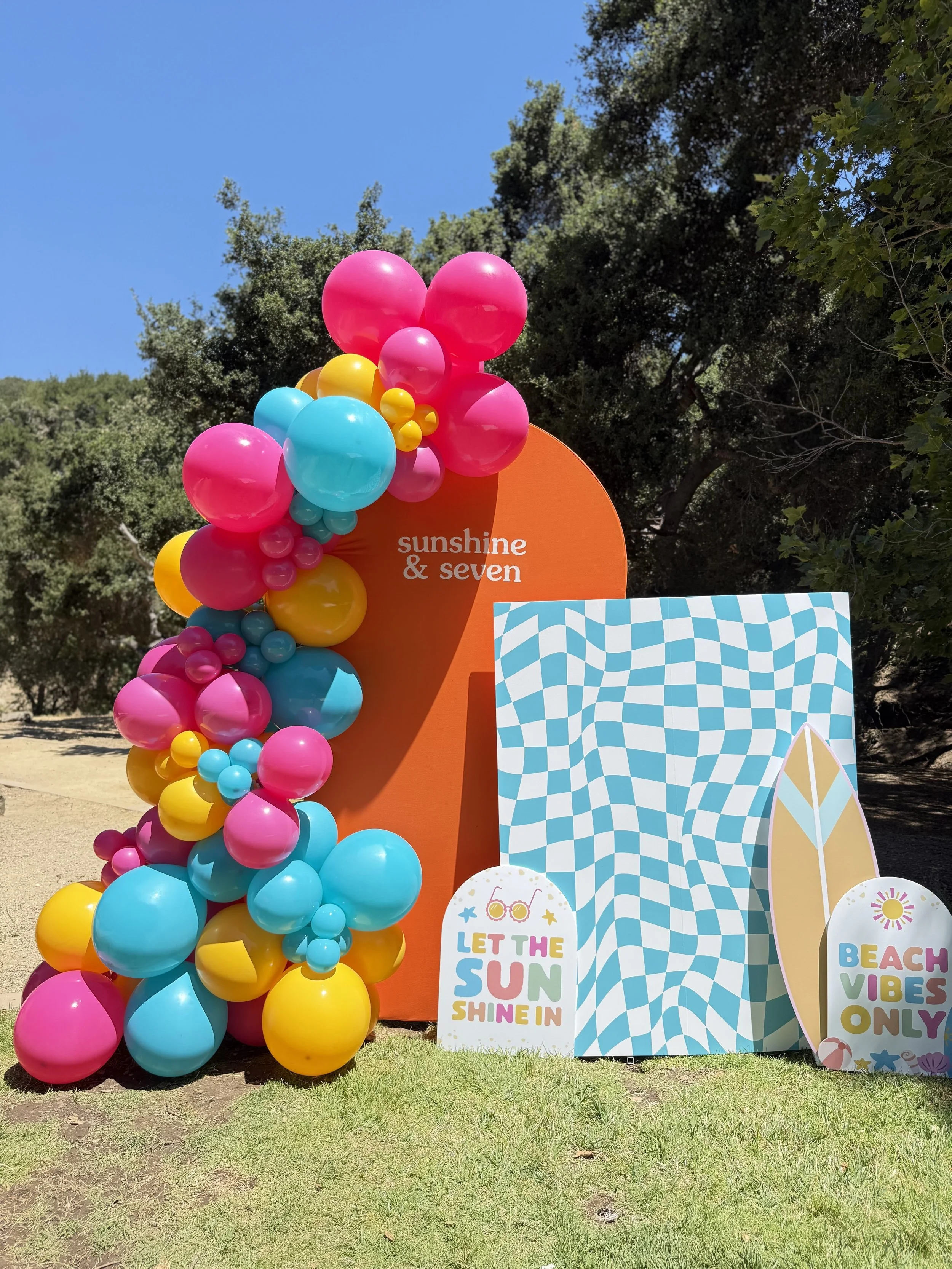Each option can be styled to match your theme perfectly. Our shimmer walls add sparkle and dimension, while our 7ft fabric arches create a beautiful, seamless backdrop for any occasion. Pair them with custom balloons to complete your look. Check out of packages below to see what works best with your party.